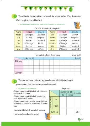 Tabel berikut menyajikan catatan luka siswa kelas IV dari sekolah