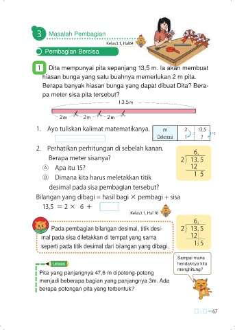 Pada pembagian bilangan desimal, titik desi- 2 13 , 5