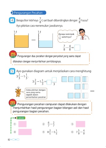 Pengurangan pecahan campuran dapat dilakukan dengan