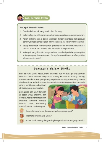 3.  Kalian melatih peran di dalam kelompok dengan membaca dialog sesuai