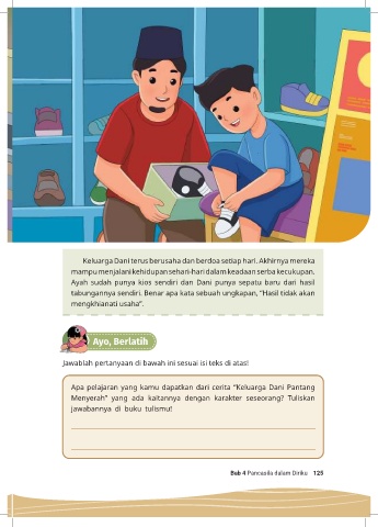 Ayah sudah punya kios sendiri dan Dani punya sepatu baru dari hasil