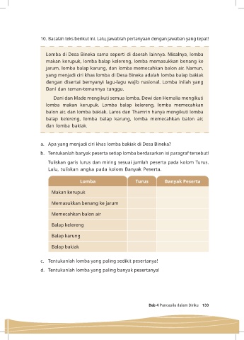 b.  Tentukanlah banyak peserta setiap lomba berdasarkan isi paragraf tersebut!