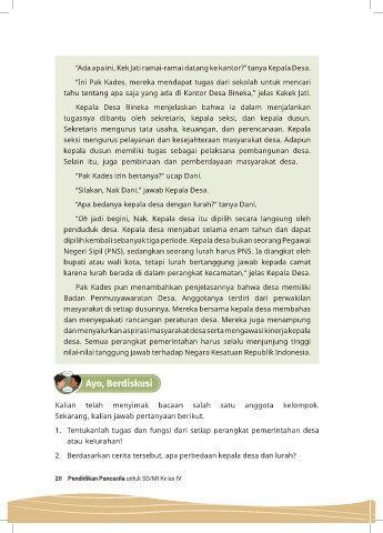 2. Berdasarkan cerita tersebut, apa perbedaan kepala desa dan lurah?