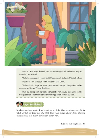 “Wah, kenapa repot-repot, Nak? Mari, masuk dulu sini!” kata Bu Reni.