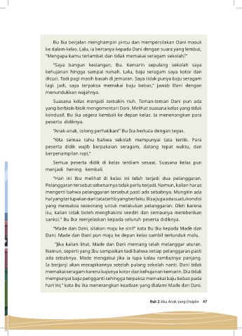 ke dalam kelas. Lalu, ia bertanya kepada Dani dengan suara yang lembut,