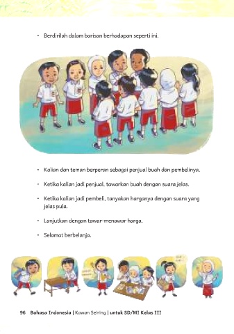 • Ketika kalian jadi penjual, tawarkan buah dengan suara jelas.
