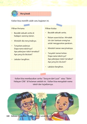 Kalian bisa membacakan cerita “Senyum dari Laut” atau “Bahri