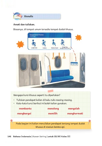Pada bagian ini kalian menuliskan pendapat tentang tempat duduk