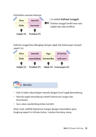 Kalimat tunggal bisa dilengkapi dengan objek dan keterangan menjadi