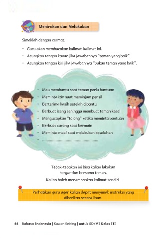 • Acungkan tangan kanan jika jawabannya “teman yang baik”.