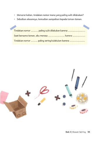Tindakan nomor ........... paling sulit dilakukan karena ..........................