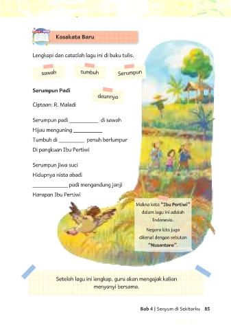 Lengkapi dan catatlah lagu ini di buku tulis.