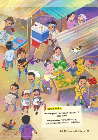 Kata Baruku memanggul: membawa sesuatu di atas bahu menjajakan: menjual barang dagangan dengan dibawa berkeliling Bab 4 | Senyum di Sekitarku 89