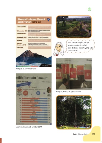 Ada banyak angka, tetapi apakah angka tersebut sesederhana seperti yang ada pada koran? Kompas, 5 November 2018 Kompas, Rabu, 15 Agustus 2018 Media Indonesia, 25 Oktober 2018 Bab 8 Diagram Garis 111