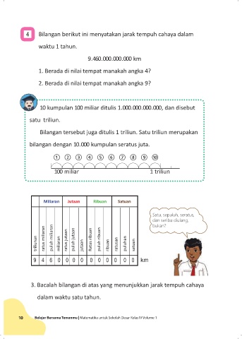 3. Bacalah bilangan di atas yang menunjukkan jarak tempuh cahaya