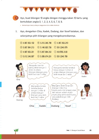 1. Ayo, dengarkan Chia, Kadek, Dadang, dan Yosef katakan, dan