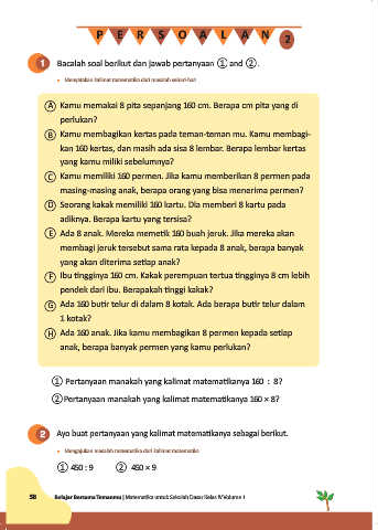 ⃝ H Ada 160 anak. Jika kamu membagikan 8 permen kepada setiap