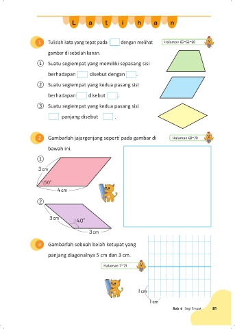 Gambarlah jajargenjang seperti pada gambar di Halaman 68~70