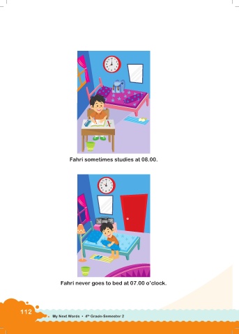 Fahri sometimes studies at 08.00. Fahri never goes to bed at 07.00 o’clock. 112 th My Next Words • 4 Grade-Semester 2
