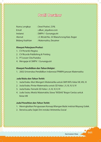 Bidang Keahlian : Matematika, Desainer