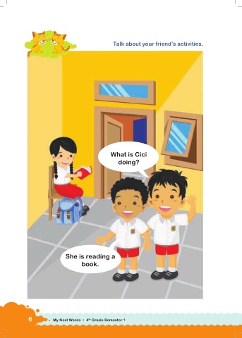 Talk about your friend’s activities. What is Cici doing? She is reading a book. 6 My Next Words • 4 Grade-Semester 1 th