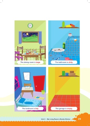 The dining room is large The bathroom is dirty. The bedroom is tidy The garage is empty. Unit 3 • My Living Room is Beside Kitchen 29
