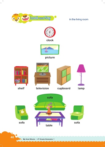 In the living room clock picture shelf television cupboard lamp sofa vase sofa sofa table 46 My Next Words • 4 Grade-Semester 1 th