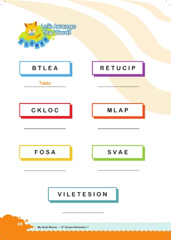 L Let’s Arrangeet’s Arrange Let’s Arrange L et’s Arr ange ds The Words or The Wordsords The W The W B T L E A R E T U C I P Table C K L O C M L A P F O S A S V A E V I L E T E S I O N 48 th My Next Words • 4 Grade-Semester 1