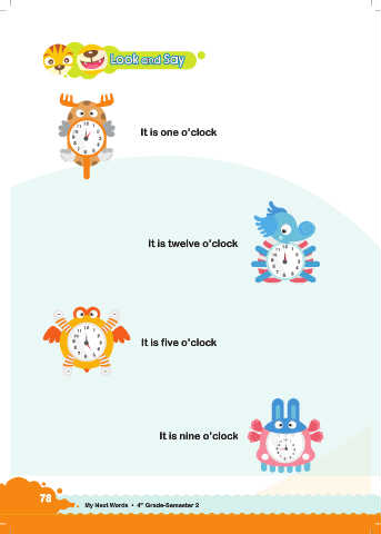 It is one o’clock It is twelve o’clock It is five o’clock It is nine o’clock 78 My Next Words • 4 Grade-Semester 2 th
