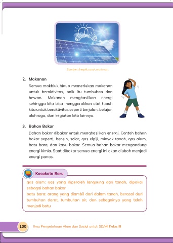 Bahan bakar dibakar untuk menghasilkan energi. Contoh bahan