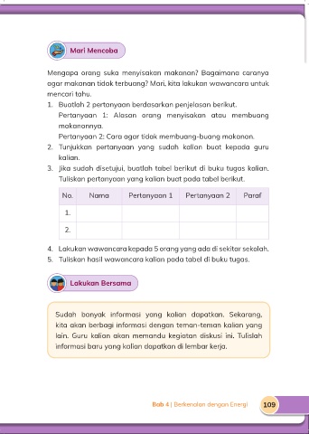 5. Tuliskan hasil wawancara kalian pada tabel di buku tugas.