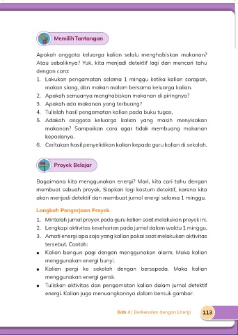 akan menjadi detektif dan membuat jurnal energi selama 1 minggu.