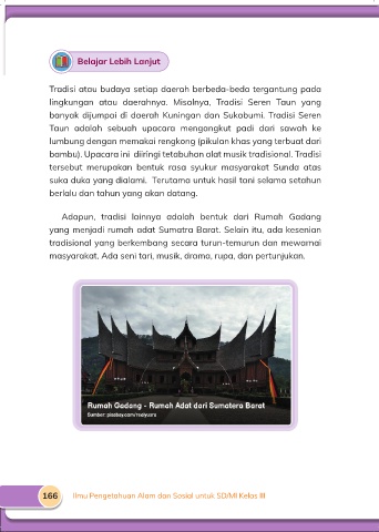 yang menjadi rumah adat Sumatra Barat. Selain itu, ada kesenian