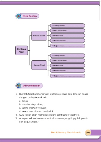 1. Buatlah tabel perbandingan dataran rendah dan dataran tinggi