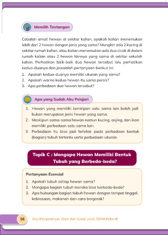 Topik C : Mengapa Hewan Memiliki Bentuk
