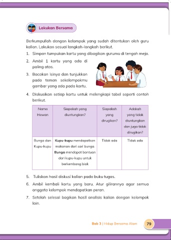 4. Diskusikan setiap kartu untuk melengkapi tabel seperti contoh