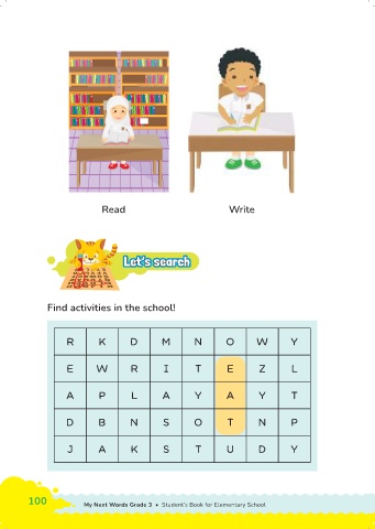 Read Write t’ t’ Le Le Le t’ s search s search s search Let’s search Find activities in the school! R K D M N O W Y E W R I T E Z L A P L A Y A Y T D B N S O T N P J A K S T U D Y 100 My Next Words Grade 3 • Student’s Book for Elementary School 101