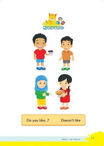 w w w w w ords ords w ords My new words My My My ne ne ne Do you like...? Doesn’t like 21 Unit 2 • I don’t like rice