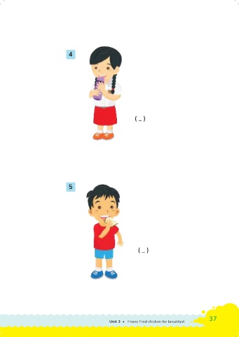4 ( _ ) 5 ( _ ) 36 Unit 3 • I have fried chicken for breakfast 37