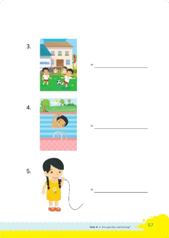 3. = 4. = 5. = 56 Unit 4 • Do you like swimming? 57