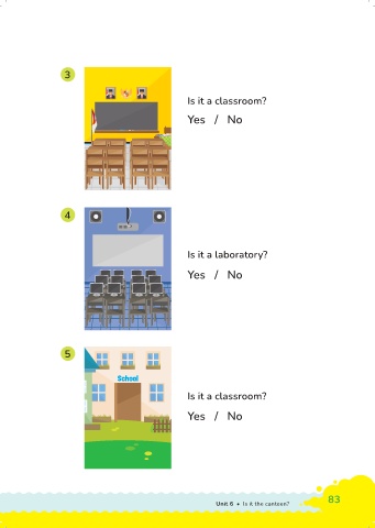 3 Is it a classroom? Yes / No 4 Is it a laboratory? Yes / No 5 School Is it a classroom? Yes / No 82 Unit 6 • Is it the canteen? 83