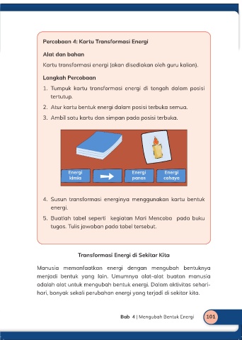 100  Ilmu Pengetahuan Alam dan Sosial untuk SD Kelas IV          Bab  4 | Mengubah Bentuk Energi             101