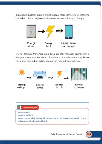 102  Ilmu Pengetahuan Alam dan Sosial untuk SD Kelas IV          Bab  4 | Mengubah Bentuk Energi             103