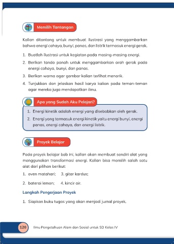120 Ilmu Pengetahuan Alam dan Sosial untuk SD Kelas IV Bab 4 | Mengubah Bentuk Energi 121