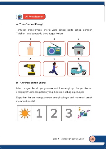 122 Ilmu Pengetahuan Alam dan Sosial untuk SD Kelas IV Bab 4 | Mengubah Bentuk Energi 123