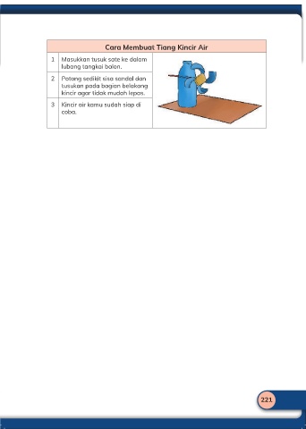Cara Membuat Tiang Kincir Air 1 Masukkan tusuk sate ke dalam lubang tangkai balon. 2 Potong sedikit sisa sandal dan tusukan pada bagian belakang kincir agar tidak mudah lepas. 3 Kincir air kamu sudah siap di coba. 221