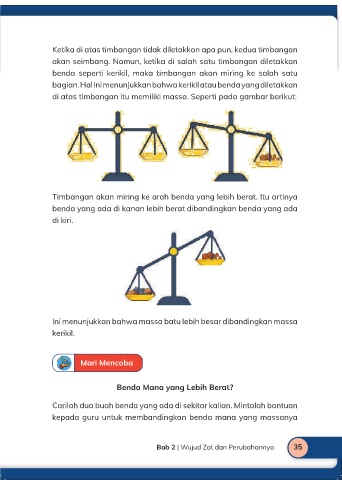akan seimbang. Namun, ketika di salah satu timbangan diletakkan