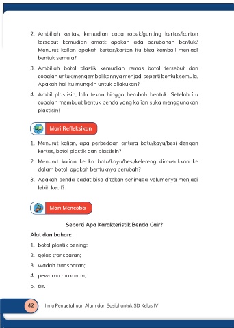 42 Ilmu Pengetahuan Alam dan Sosial untuk SD Kelas IV Bab 2 | Wujud Zat dan Perubahannya 43