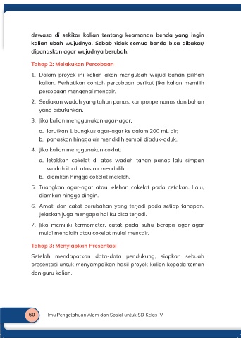 60 Ilmu Pengetahuan Alam dan Sosial untuk SD Kelas IV Bab 2 | Wujud Zat dan Perubahannya 61