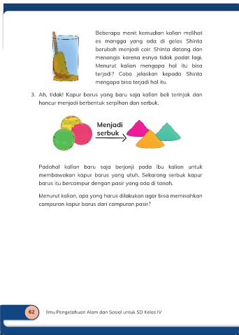 62 Ilmu Pengetahuan Alam dan Sosial untuk SD Kelas IV Bab 2 | Wujud Zat dan Perubahannya PB